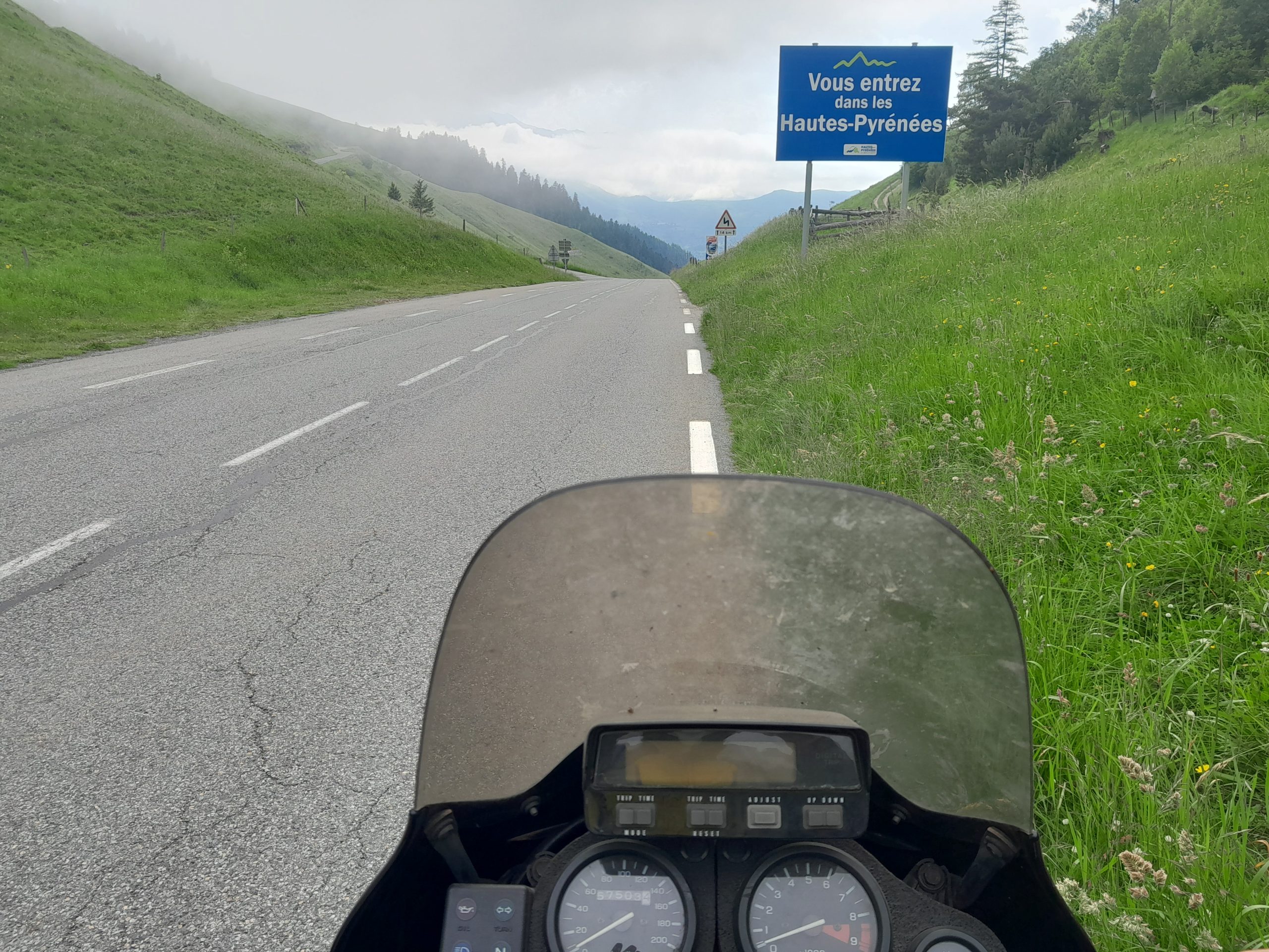 Die Pyrenäen liegen mir zu Füßen, ich muss nur zugreifen. Zum ersten Mal möchte ich sie ganz von Ost nach West, vom Mittelmeer zum Atlantik, durchqueren. Das Wetter passte, die Queen schnurrt zufrieden, endlich mal wieder unterwegs und so starte ich mit einem wahren Hochgefühl in den Tag. Ich weiß, dass es später im Hochgebirge bewölkt sein wird, aber kein Regen in Sicht. Bis zum Col de Pailheres alles wunderbar. Nach dem Reinfall vor zwei Jahren auf dem Weg zu den Kanaren, nur Regen, scheint es jetzt zu passen.