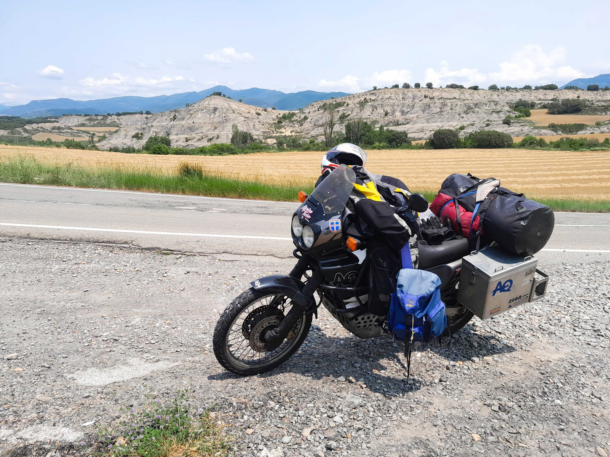 Auch am nächsten Morgen alles dicht! Ich habe keinen Bock auf einen weiteren Tag Visierwischen, Abbruch nach Spanien. Kaum habe ich die Grenze im Tunnel d`Aragnouet-Bielsa überschritten – Sonne, 30° und sofort steigt das Wohlfühlometer wieder an.