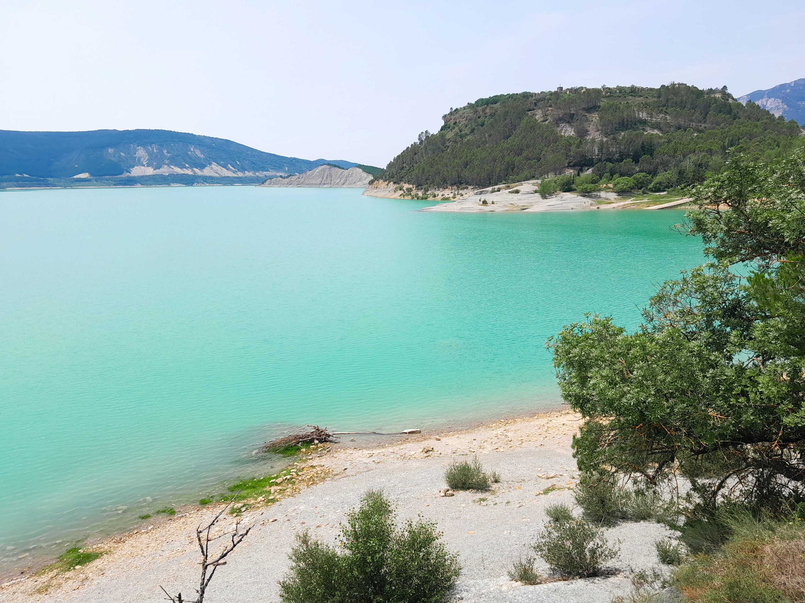 Am schön gelegenen See Embalse de Yesa treffe ich zwei Engländern auf Rennern. Nein, sie sind auf diesen unbequemen Teilen nicht durch ganz Frankreich angereist, einfacher geht es mit der Fähre Plymouth – Santander.