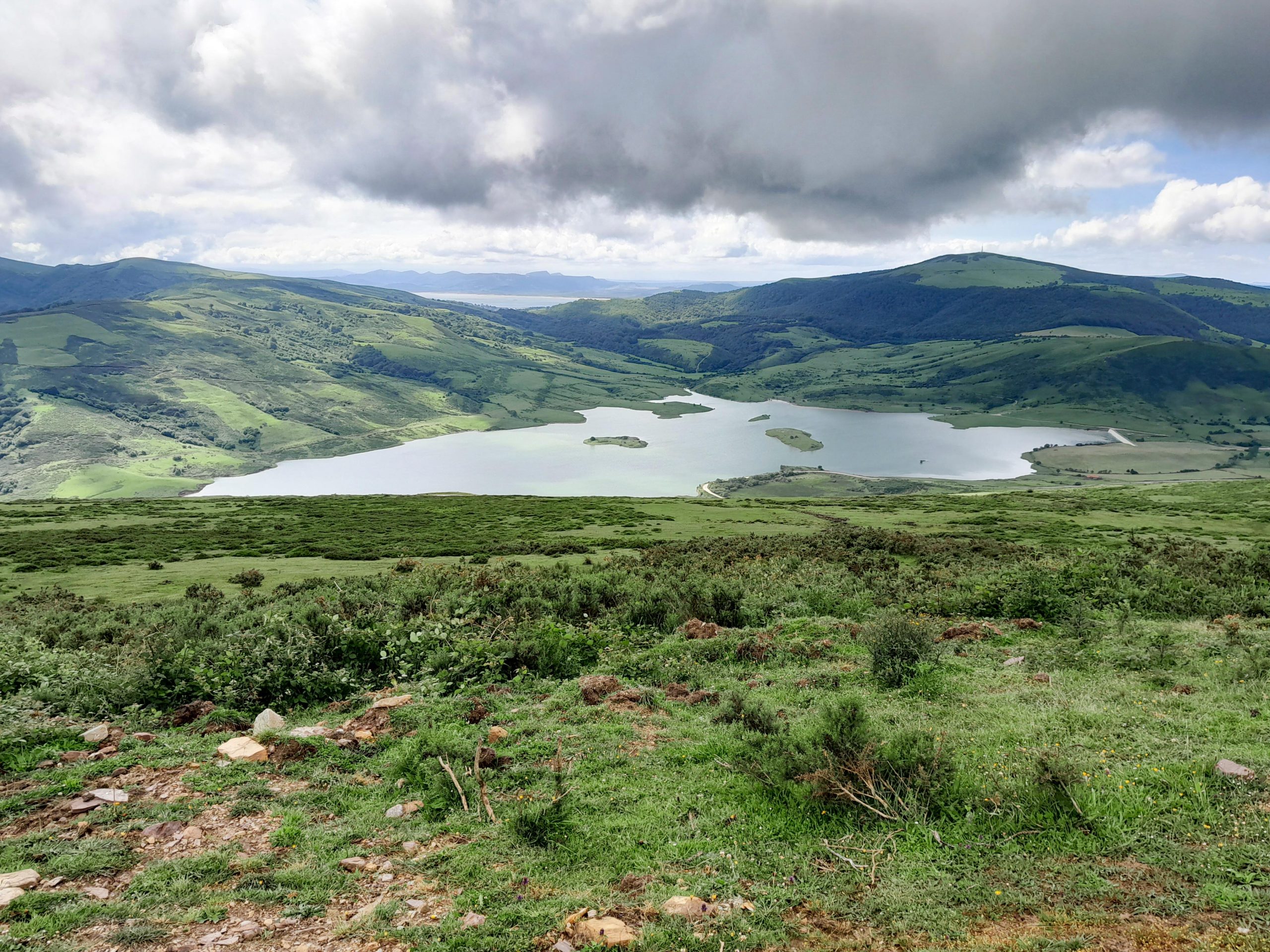 Im Gegensatz zur Los Machucos ist die Auffahrt zum Pico Jano gemütlich. Eine gut ausgebaute Straße, auf halber Höhe der See Embalse de Aisa.
