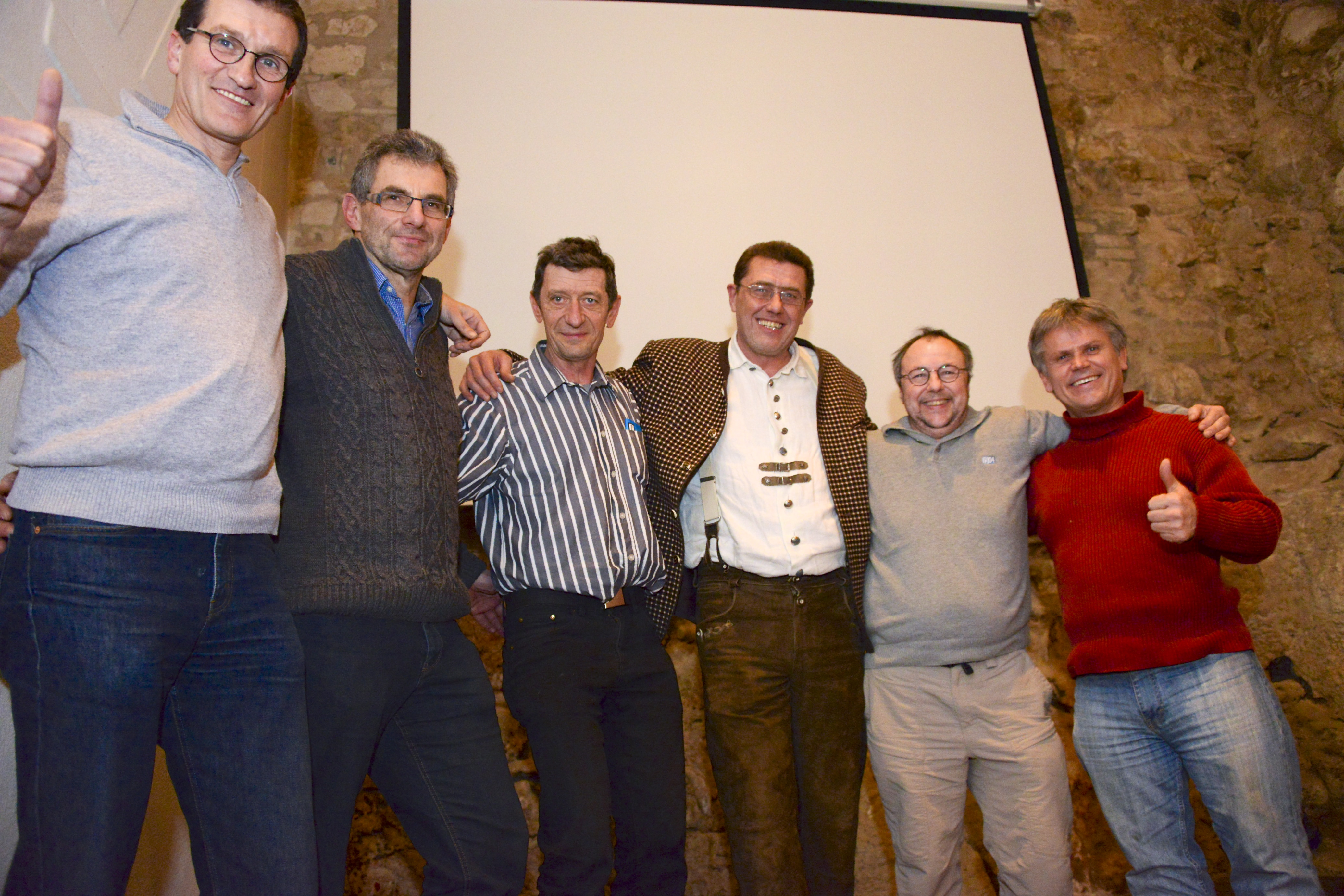von rechts: Joe Meyer, Peppi Adametz, Hermann Geiger, Schorsch Baumeister, Karl Seitz und Peter Schuster