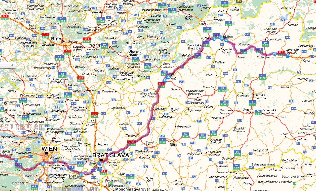 Um zügig voranzukommen, werden wir auf dem ersten Teil der Strecke fast ausschließlich die Autobahn nutzen. So hoffen wir, gleich am ersten Tag, über 800 km zu schaffen, die uns bis an den Fuß der Hohen Tatra in der Slowakei bringen sollen. Um unsere Reifen gleich von Beginn an zu schonen, wir haben keine Ersatzreifen dabei und wollen mit dem einen Satz auskommen, werden wir nicht schneller als mit 100 km/h unterwegs sein.