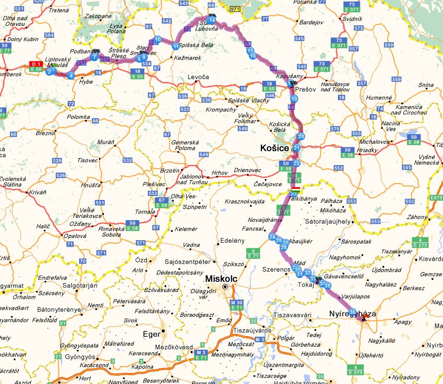 Wenn es das Wetter erlaubt, werden wir am Montag, dem zweiten Tag unserer Reise, die Autobahn in Richtung Norden verlassen und auf kleinen Straßen durch die Hohe Tatra fahren. Vielleicht schaffen wir es an diesem Tag, an dem wir in Ungarn einreisen werden, bis in die Nähe der rumänischen Grenze.