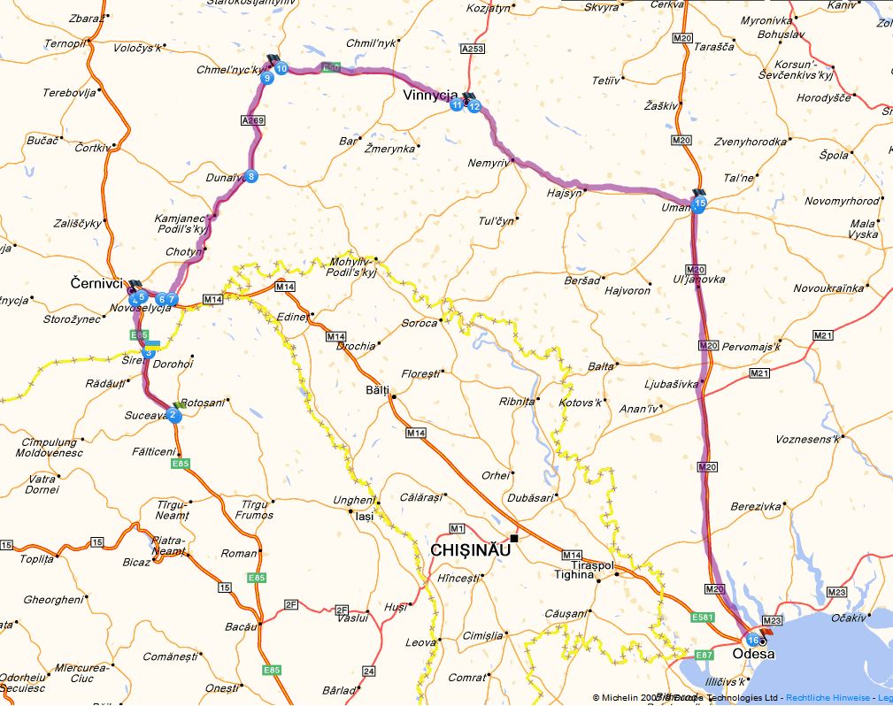 Am Donnerstag und Freitag wollen wir dann Moldawien nördlich durch die Ukraine umfahren, um dann nach weiteren 800 km abends in Odessa einzutreffen.