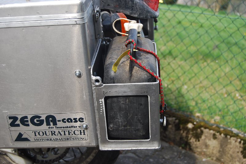 Die Halterungen für die Ersatzkanister wurden an den Touratech-Boxen befestigt.